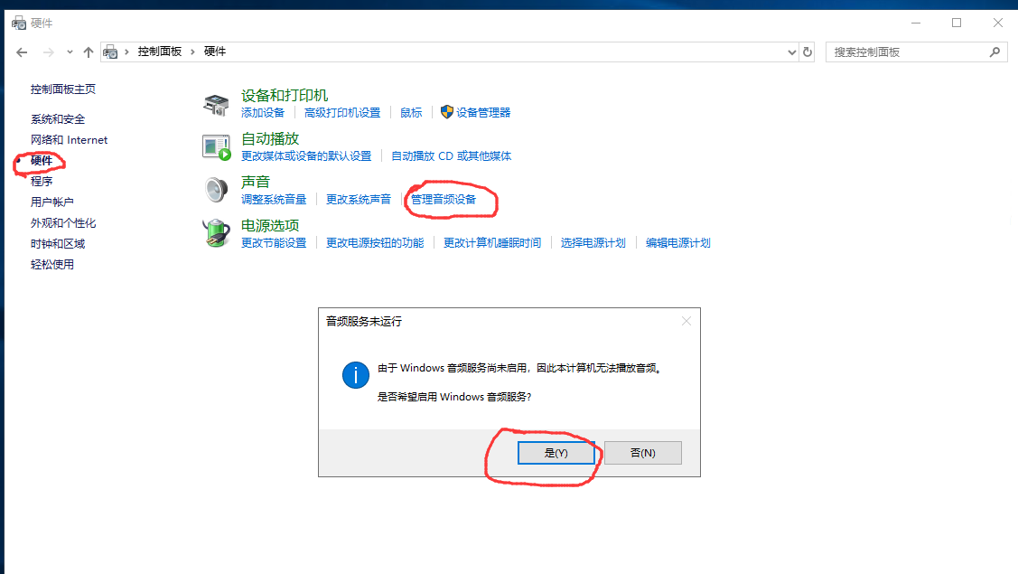 接着打开控制面板–硬件–声音–管理音频设备